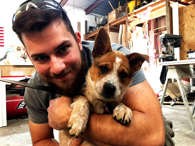 We hope to have him set-up in safety gear when he gets old enough to get his paws on sandpaper. Of course we’ll hook him up with all the safety gear such as ear plugs and eye protection! (LOL!) Way to go Tyler and Julia for bringing him in today to hang out with us out in the shop and in our offices 🙂