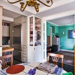 New custom built kitchen with paint finish and retro style appliances. Full view
