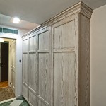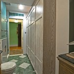 New custom made vanity with flanking storage closets and pullout drawers below the sink