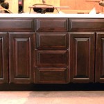 New custom made vanity with pullout drawers below the sink and a center storage pull-out