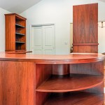 New wetbar in solid paint finish with Wilson Art solid surface countertop and pull-out storage.
